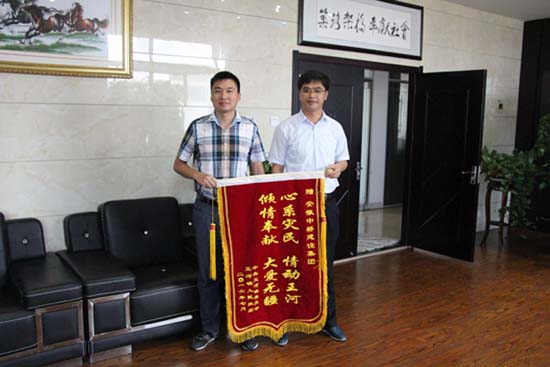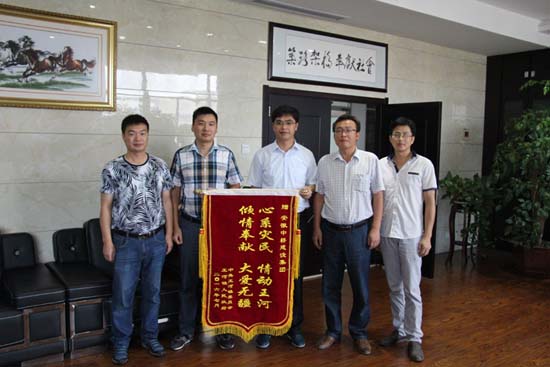 “災難無情,人有情”,8月18日上午,潛山縣王河鎮黨政領導一大早就來到中橋集團公司,鎮黨委書記林勝利、鎮長金飛同志將一面“心系災民、情動王河;傾情奉獻、大愛無疆”錦旗送到我集團公司,向中橋集團公司在這次“6.30”抗洪救災中給予災區人民的支持和捐助表示感謝!高度贊揚中橋集團在災難面前體現出的“一方有難,八方支援”的企業社會責任,同時祝愿中橋集團公司事業進步,為地方經濟發展貢獻更大的力量。